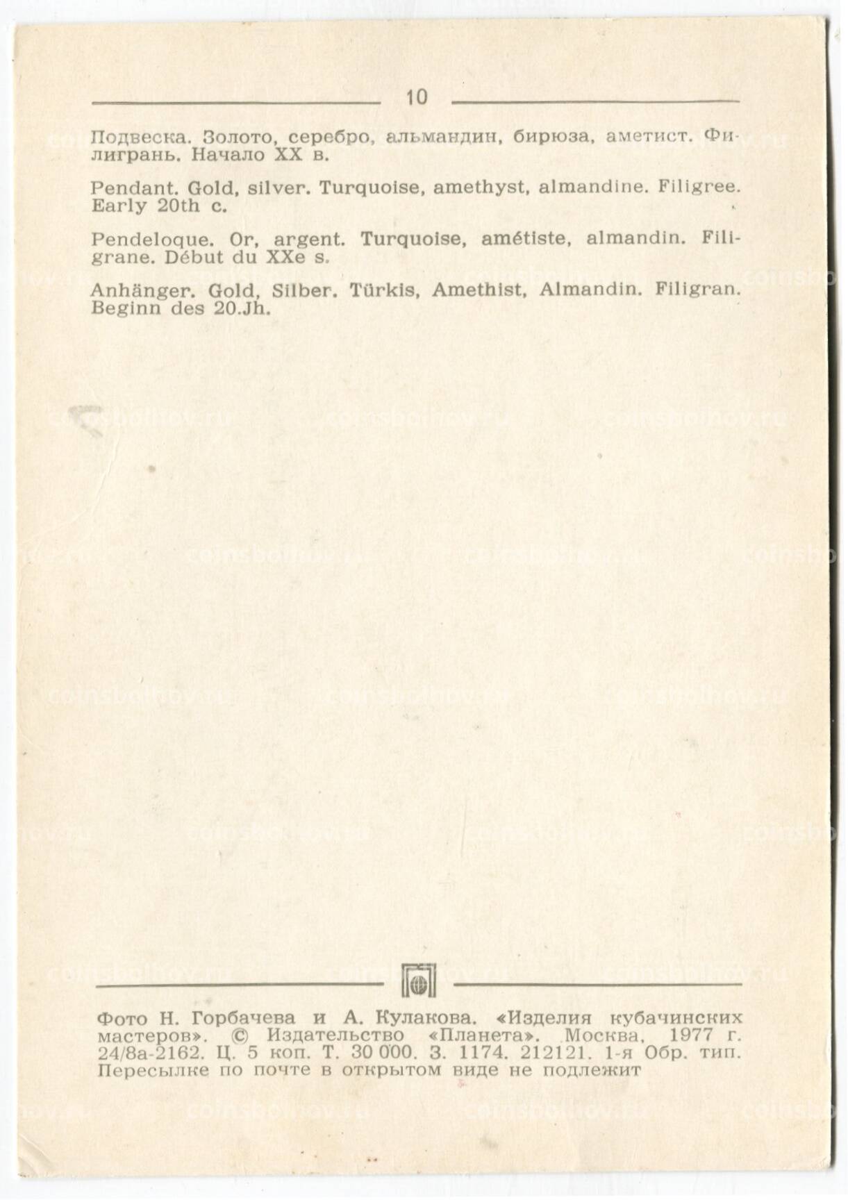 Открытка Подвеска.Золото,серебро, альмандин,бирюза,аметист.Филигрань, начало XX века